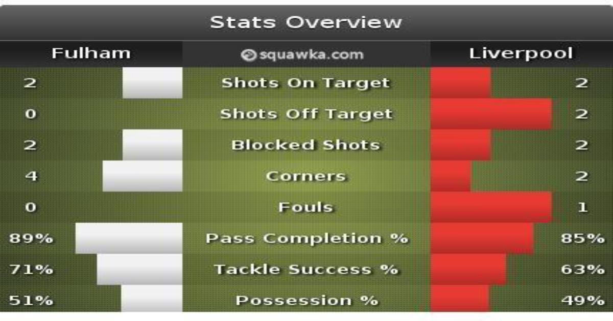 «Фулхэм» - «Ливерпуль». Статистика после первого тайма