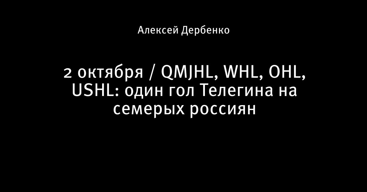2 октября / QMJHL, WHL, OHL, USHL: один гол Телегина на семерых россиян