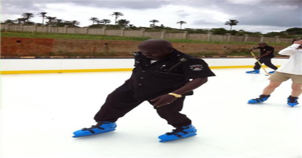 Это видимо синтетический каток, который может работать и летом на открытом воздухе без всякого холодильного оборудования. Лёд на нём пластиковый (то есть и не лёд вовсе), катание немного другое и при игре в хоккей это бы сильно сказывалось. Но для бросковых тренировок хоккеистов вполне подходит.