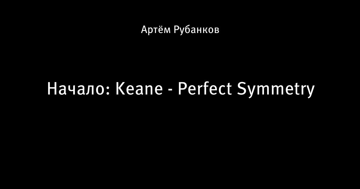 Итак, открывает цикл музыкальных пауз британская группа Keane с песней Perfect Symmetry из одноименного альбома. Год - 2008й. Она не давала мне покоя все утро уже в который раз, и мне захотелось ею с вами поделиться. Наслаждайтесь!