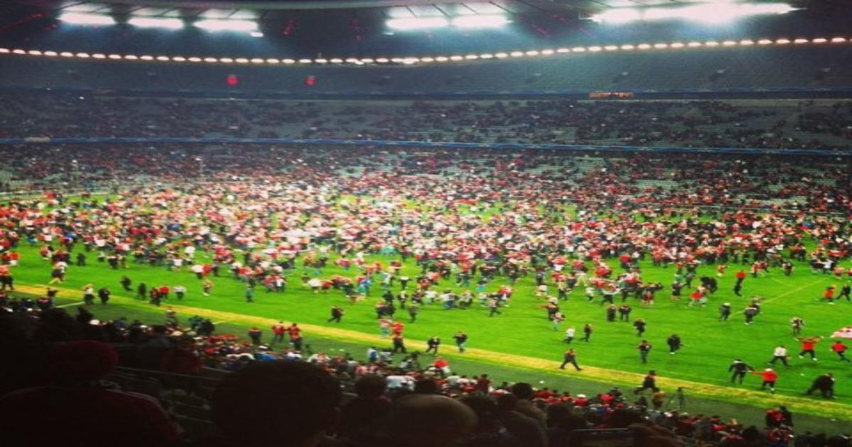 Тысячи болельщиков Баварии смотрели финал ЛЧ на родной Альянц Арене. Сразу же после свистка все бросились на поле отмечать победу.