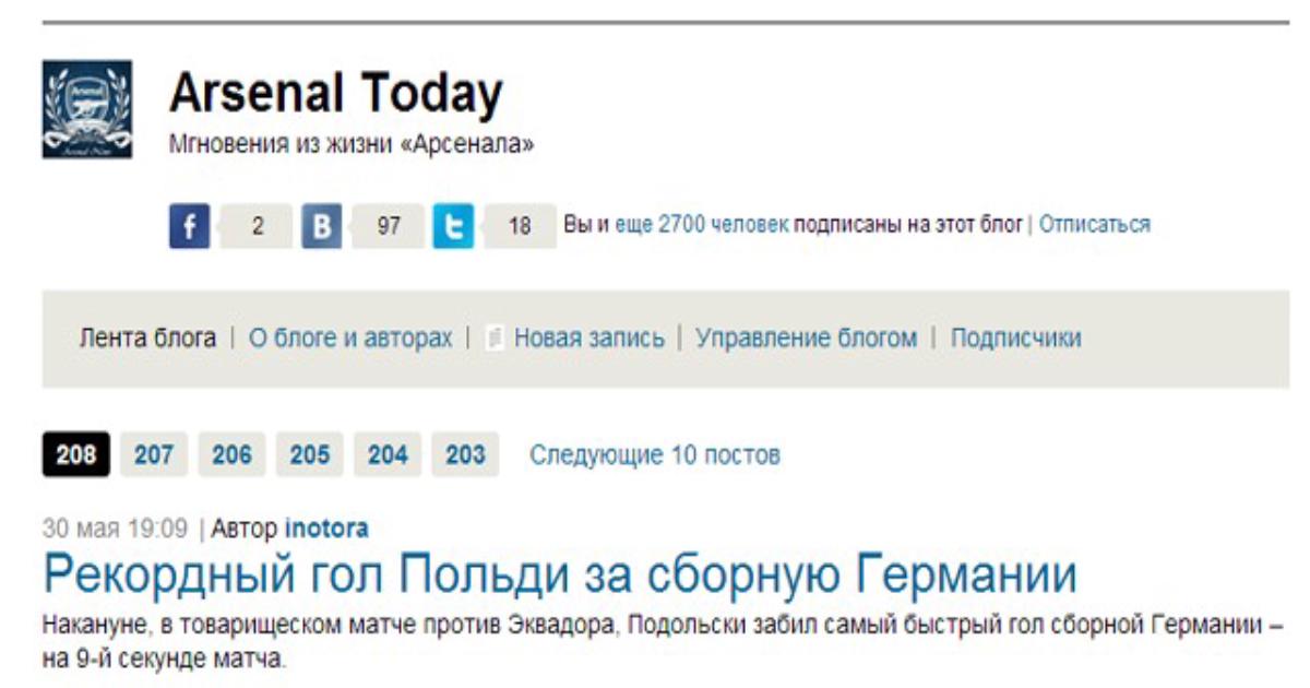 На данный момент, это самая впечатляющая компания подписчиков для канонирского блога Трибуны.