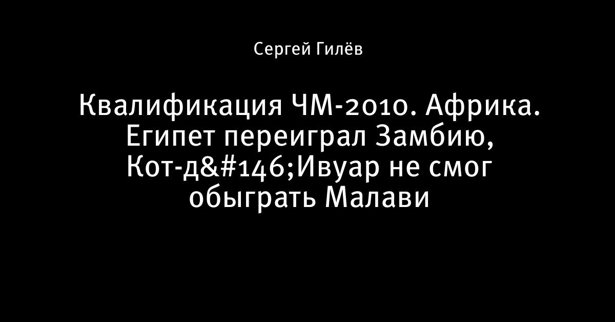 Квалификация ЧМ-2010. Африка. Египет переиграл Замбию, Кот-дИвуар не смог обыграть Малави