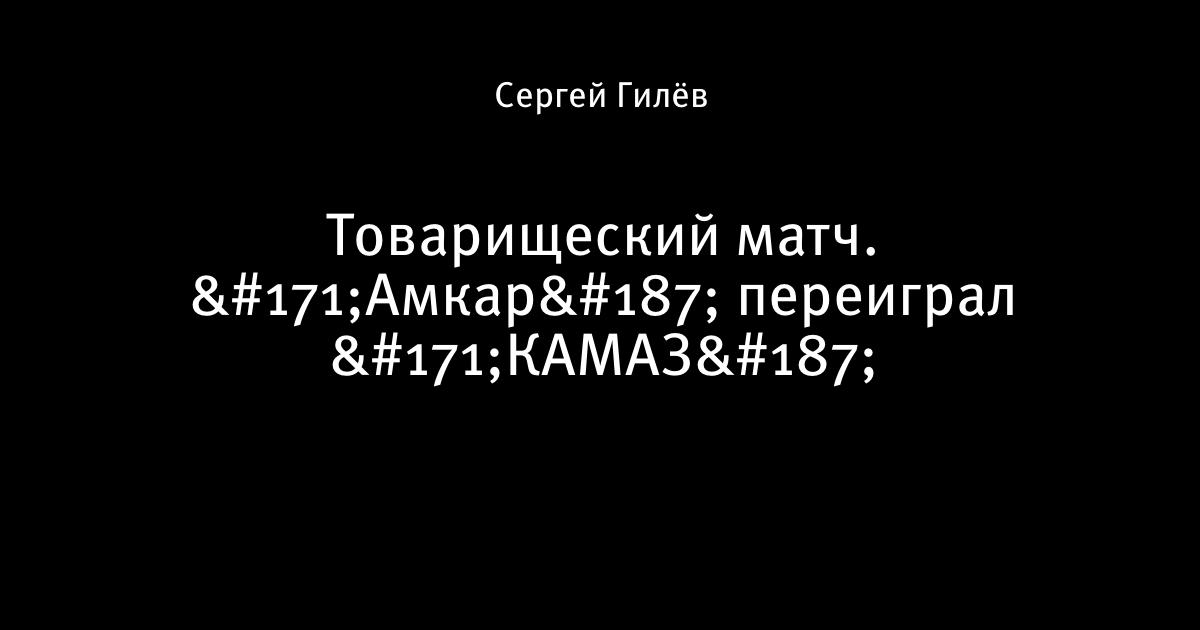 12 октября 2009, 01:58 Товарищеский матч. «Амкар» переиграл «КАМАЗ» КАМАЗ Амкар 1:2 1:0 Гогниев (45) 1:1 Жан Карлос (84) 1:2 Афанасьев (86) Подписаться на блог. Поговорить о видео и поделиться ссылками. Автор Сергей Гилёв Этот пост опубликован в блоге на Трибуне Sports.ru. Присоединяйтесь к крупнейшему сообществу спортивных болельщиков! Другие посты блога Разборки в олимпийском Париже товарищеские матчи (клубы) видео Амкар КАМАЗ