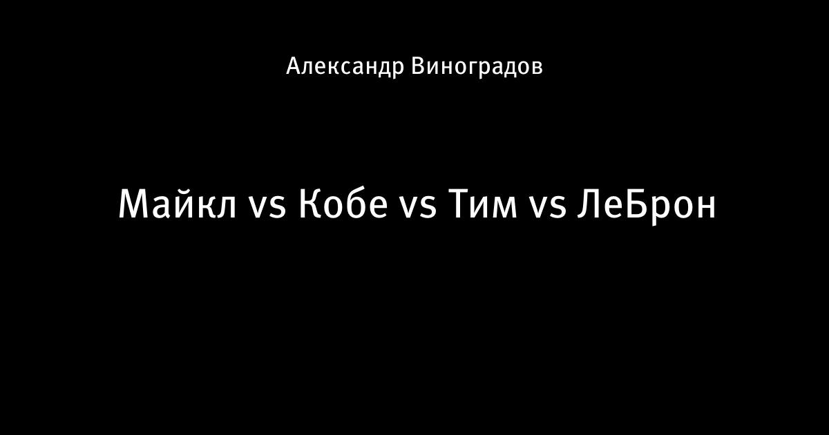 7 июня 2013, 07:55 Майкл vs Кобе vs Тим vs ЛеБрон источник - ФБ страничка Numbers Never Lie Автор Александр Виноградов Этот пост опубликован в блоге на Трибуне Sports.ru. Присоединяйтесь к крупнейшему сообществу спортивных болельщиков! Другие посты блога Видео НБА Леброн Джеймс Тим Данкан Майкл Джордан Кобе Брайант