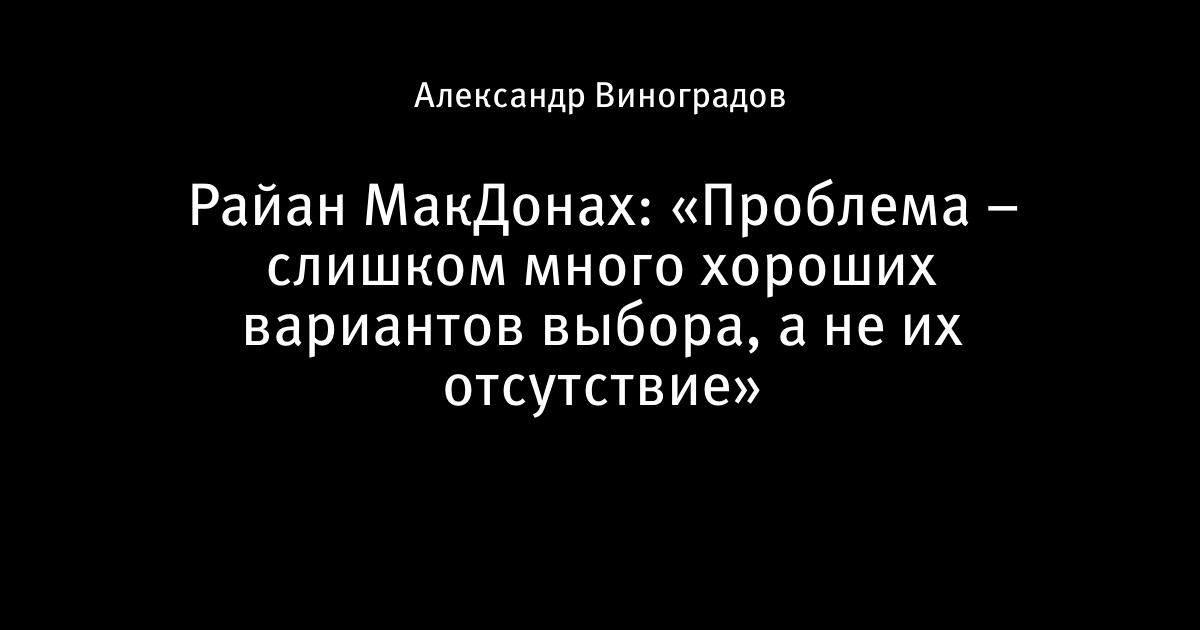 Райан МакДонах: «Проблема – слишком много хороших вариантов выбора, а не их отсутствие»