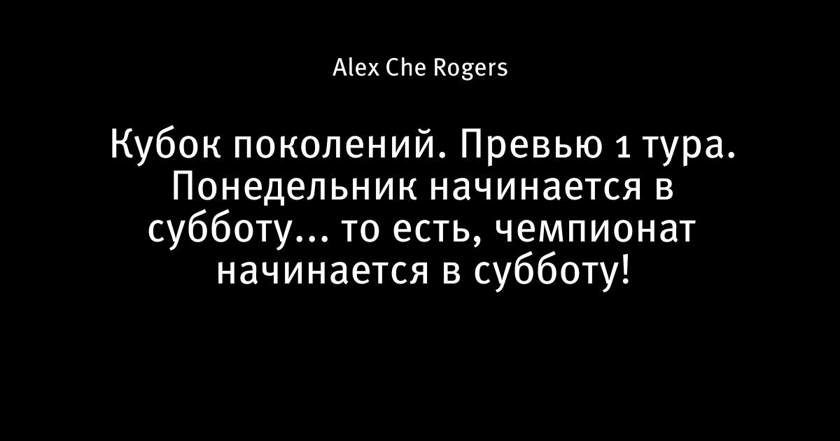 Кубок поколений. Превью 1 тура. Понедельник начинается в субботу... то есть, чемпионат начинается в субботу!