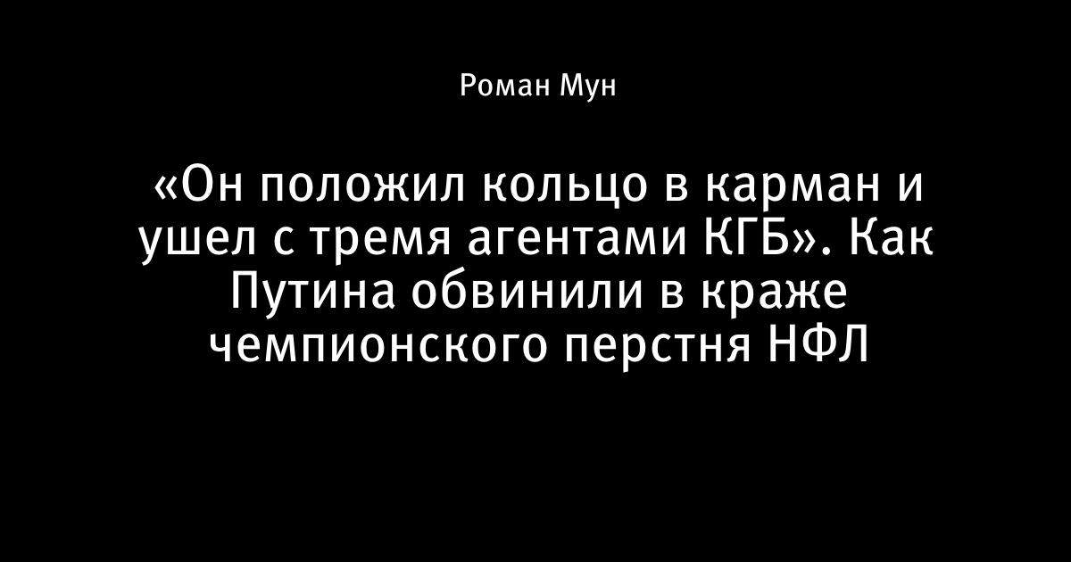 «Он положил кольцо в карман и ушел с тремя агентами КГБ». Как Путина обвинили в краже чемпионского перстня НФЛ