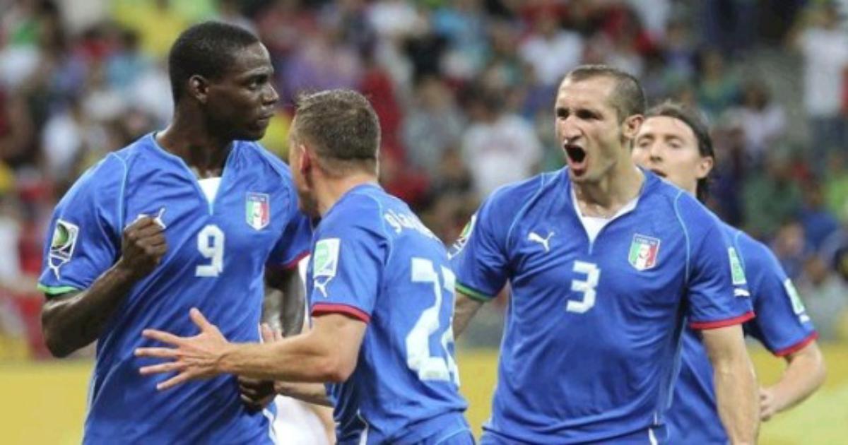 Марио Балотелли поздравляет Себастьяна Джовинко с дебютным голом за Национале