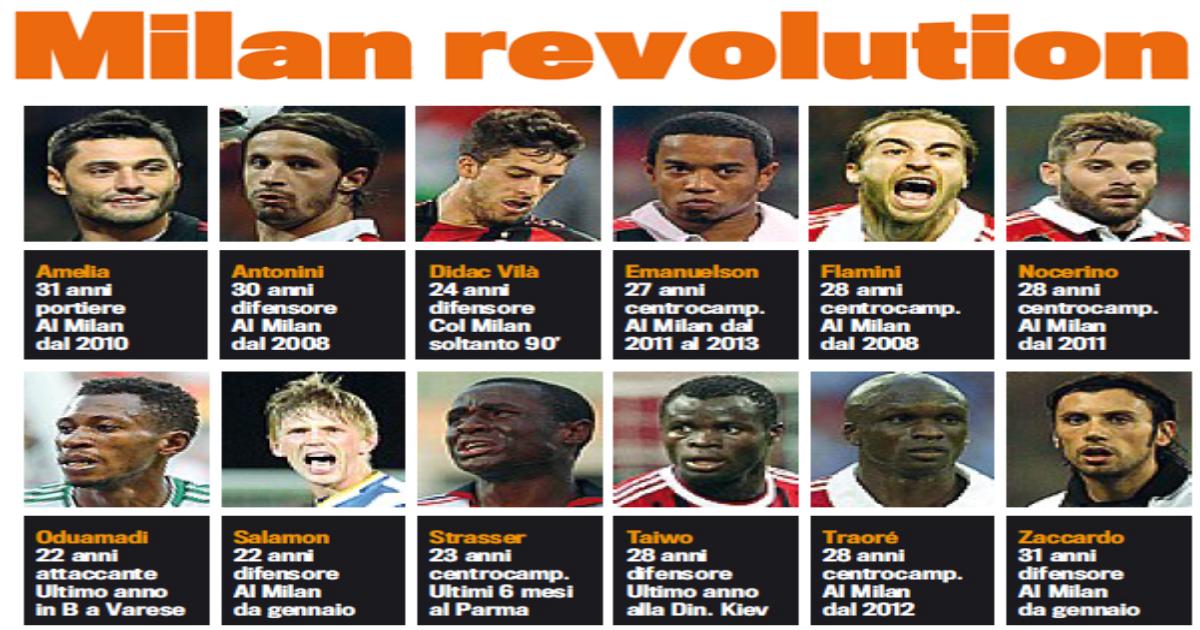 Та команда, что выйдет на поле в предварительных матчах Лиги Чемпионов, будет значительно отличаться от той, что завершала прошлый сезон. Нас ждет маленькая большая революция во всех линиях, и не забываем, что Амброзини и Йепес не продлили контракт, а Бояна не стали выкупать. Движуха, причинами которой являются возврат из аренды, недовольство своим положением или несоответствие проекту , потенциально затрагивает 12 человек.