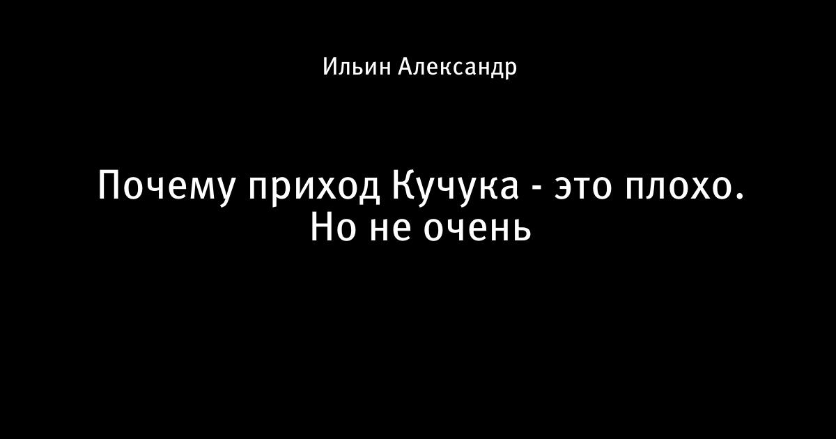 Почему приход Кучука - это плохо. Но не очень
