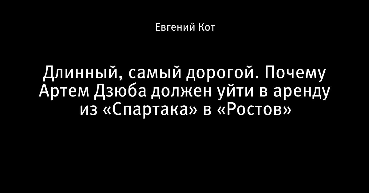 Последние выходные июня были взорваны новостью о возможном арендном переходе из столичного «Спартака» в «Ростов» двухметрового форварда «красно-белых» Артема Дзюбы. Пока что еще не объявленный переход не лишен своей логики и привлекательности как одной, так и для другой стороны. Блог «Записки двойного котэ» поясняет взаимную выгоду спартаковского великана.