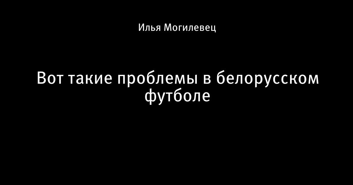 1 июля 2013, 18:29 Вот такие проблемы в белорусском футболе Интересный опрос на сайте ФК "Витебск" Автор Илья Могилевец Этот пост опубликован в блоге на Трибуне Sports.ru. Присоединяйтесь к крупнейшему сообществу спортивных болельщиков! Другие посты блога Телевизор 3.0