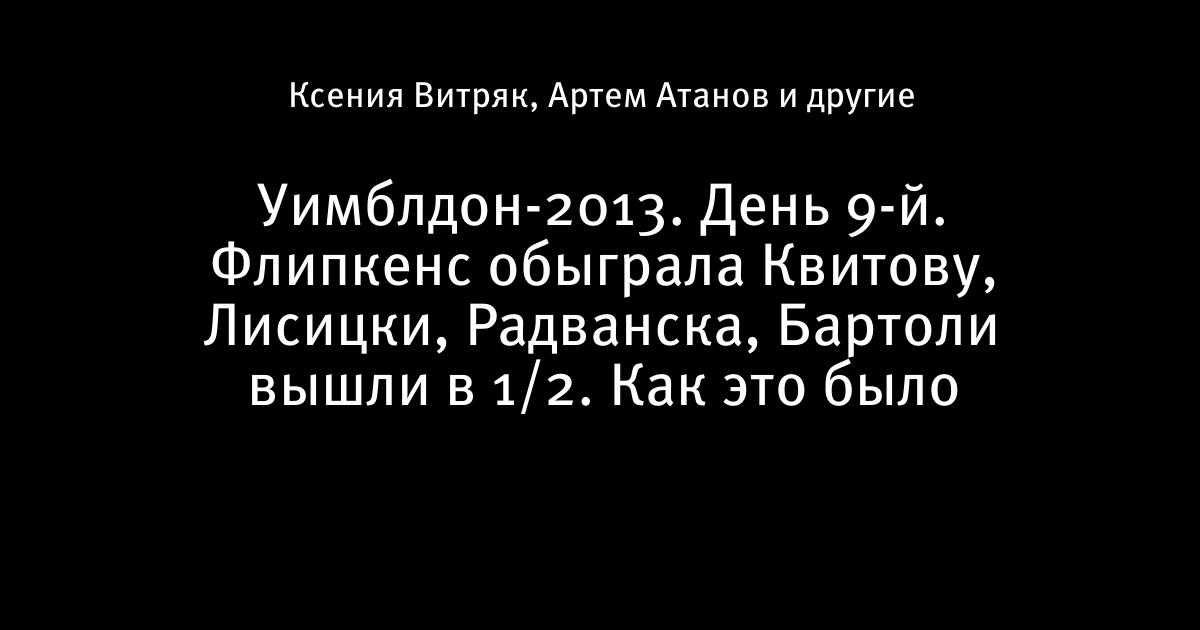 Уимблдон-2013. День 9-й. Флипкенс обыграла Квитову, Лисицки, Радванска, Бартоли вышли в 1/2. Как это было