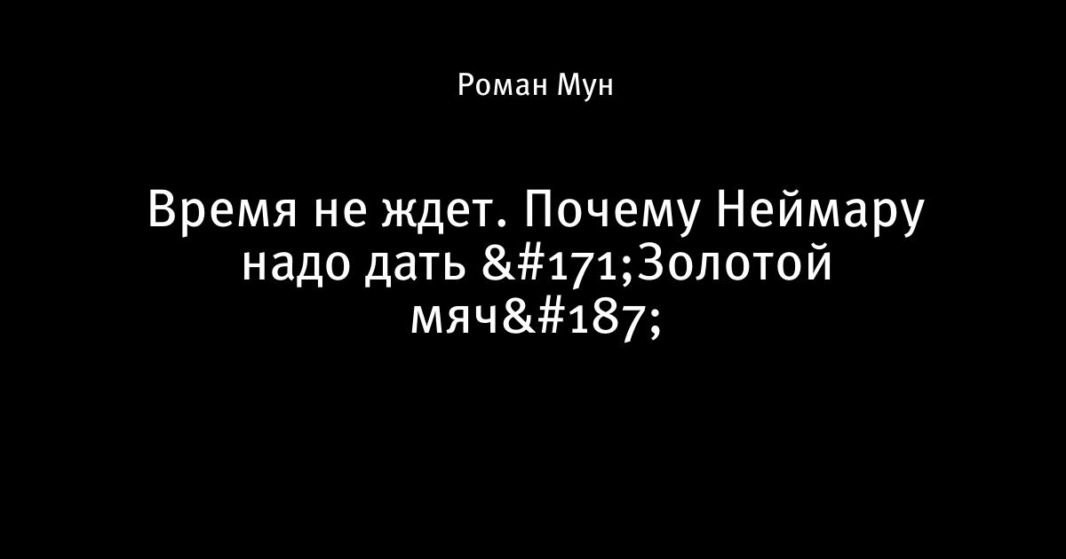 Время не ждет. Почему Неймару надо дать «Золотой мяч»