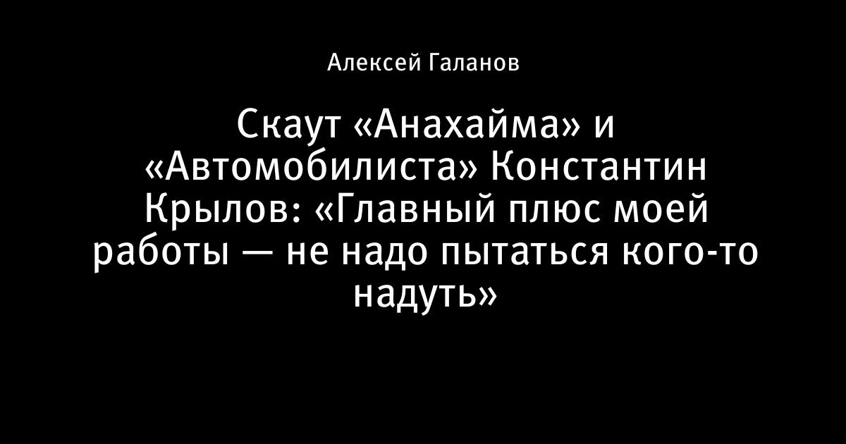 Скаут «Анахайма» и «Автомобилиста» Константин Крылов: «Главный плюс моей работы — не надо пытаться кого-то надуть»