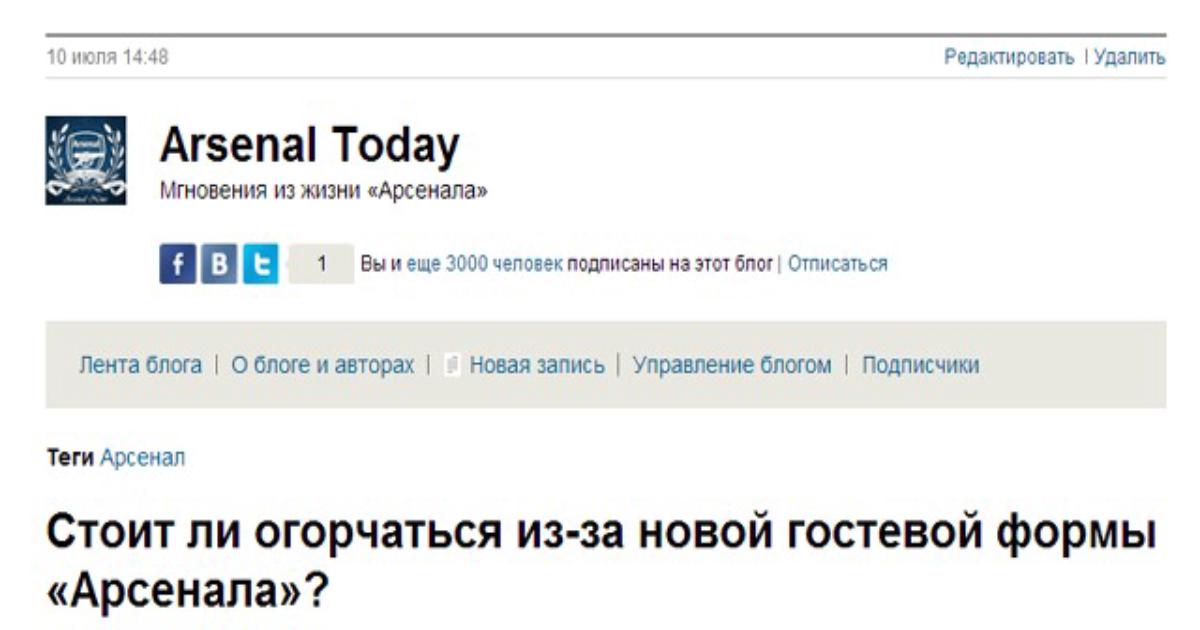 В «канонирском» блоге Arsenal Today – 3000 подписчиков