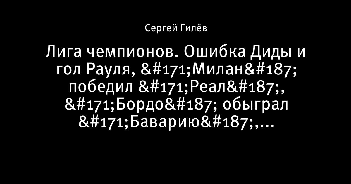 Лига чемпионов. Ошибка Диды и гол Рауля, «Милан» победил «Реал», «Бордо» обыграл «Баварию», «Челси» разгромил «Атлетико»