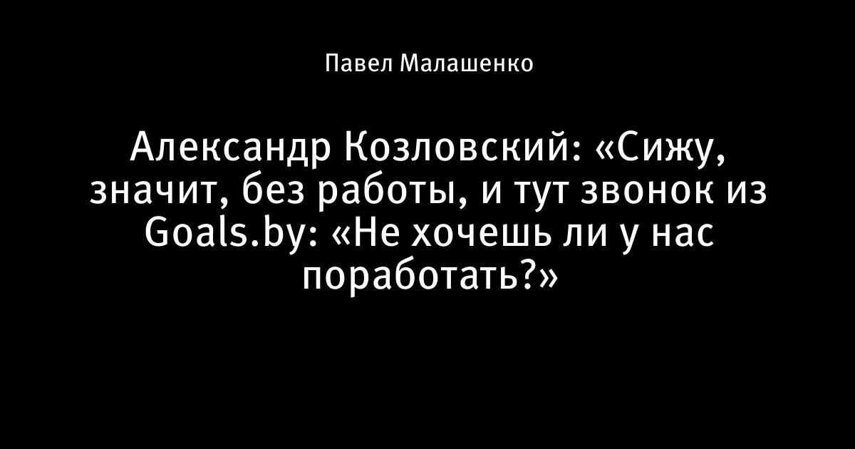 Александр Козловский: «Сижу, значит, без работы, и тут звонок из Goals.by: «Не хочешь ли у нас поработать?»