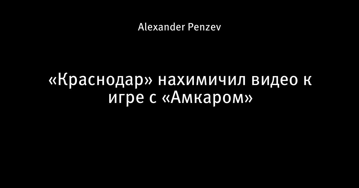 24 июля 2013, 11:40 «Краснодар» нахимичил видео к игре с «Амкаром» 1 Автор Alexander Penzev Этот пост опубликован в блоге на Трибуне Sports.ru. Присоединяйтесь к крупнейшему сообществу спортивных болельщиков! Другие посты блога Телевизор 3.0 Краснодар
