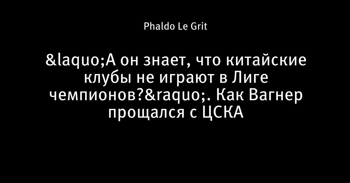 24 июля 2013, 15:26 «А он знает, что китайские клубы не играют в Лиге чемпионов?». Как Вагнер прощался с ЦСКА 1 Автор Phaldo Le Grit Этот пост опубликован в блоге на Трибуне Sports.ru. Присоединяйтесь к крупнейшему сообществу спортивных болельщиков! Другие посты блога Вы это видели? премьер-лига Россия Вагнер Лав ЦСКА