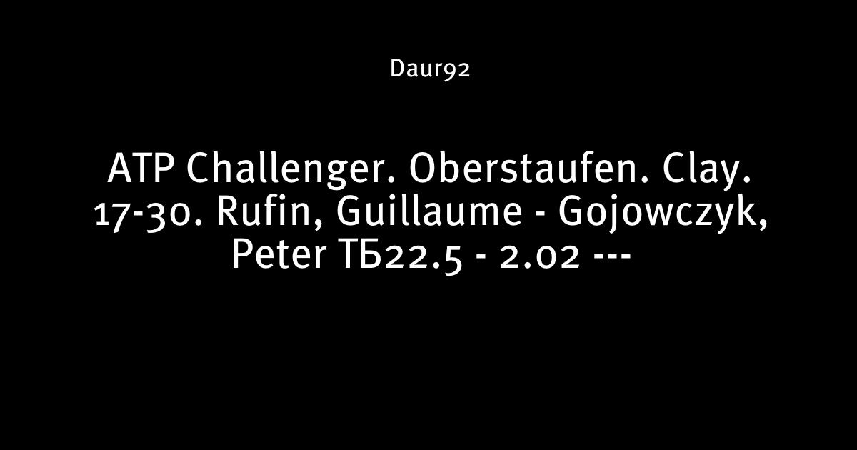 ATP Challenger. Oberstaufen. Clay. 17-30. Rufin, Guillaume - Gojowczyk, Peter ТБ22.5 - 2.02 ---