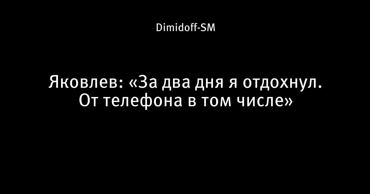 Яковлев: «За два дня я отдохнул. От телефона в том числе»