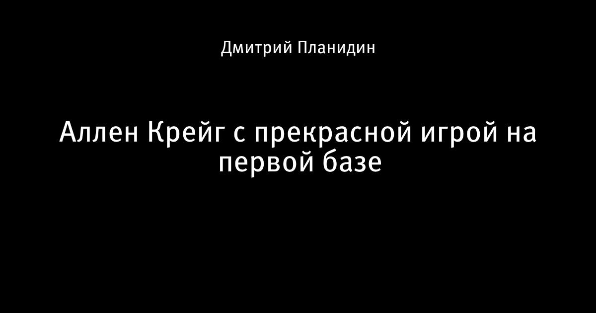 31 июля 2013, 17:50 Аллен Крейг с прекрасной игрой на первой базе 1 Автор Дмитрий Планидин Этот пост опубликован в блоге на Трибуне Sports.ru. Присоединяйтесь к крупнейшему сообществу спортивных болельщиков! Другие посты блога Телевизор 3.0 MLB Сент-Луис