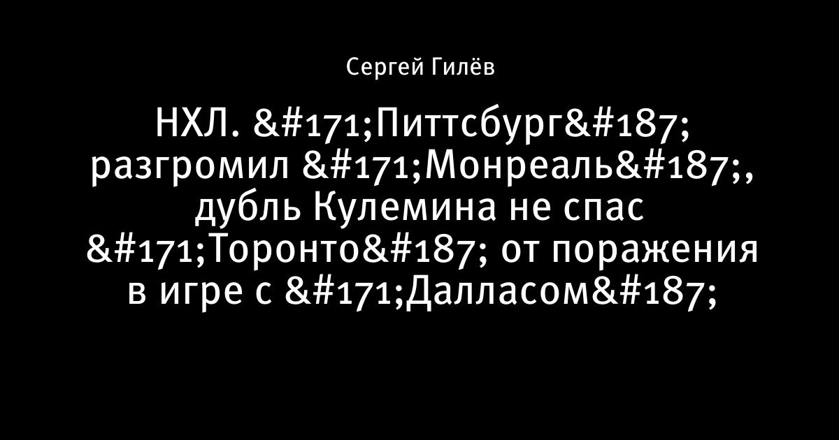НХЛ. «Питтсбург» разгромил «Монреаль», дубль Кулемина не спас «Торонто» от поражения в игре с «Далласом»