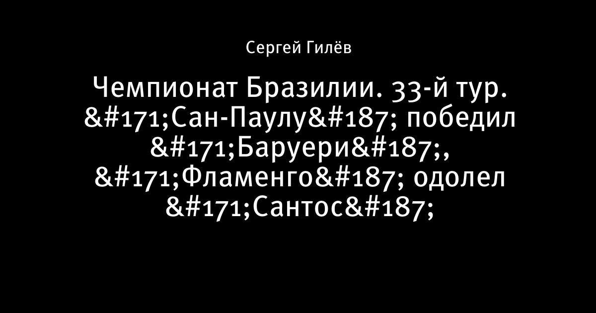 1 ноября 2009, 23:59 Чемпионат Бразилии. 33-й тур. «Сан-Паулу» победил «Баруери», «Фламенго» одолел «Сантос» Аваи Атлетико Паранаэнсе 2:0 Сан-Паулу Баруери 1:0 Фламенго Сантос 1:0 Автор Сергей Гилёв Этот пост опубликован в блоге на Трибуне Sports.ru. Присоединяйтесь к крупнейшему сообществу спортивных болельщиков! Другие посты блога Разборки в олимпийском Париже Сантос высшая лига Бразилия Гремио Баруэри Фламенго Аваи видео Атлетико Паранаэнсе Сан-Паулу