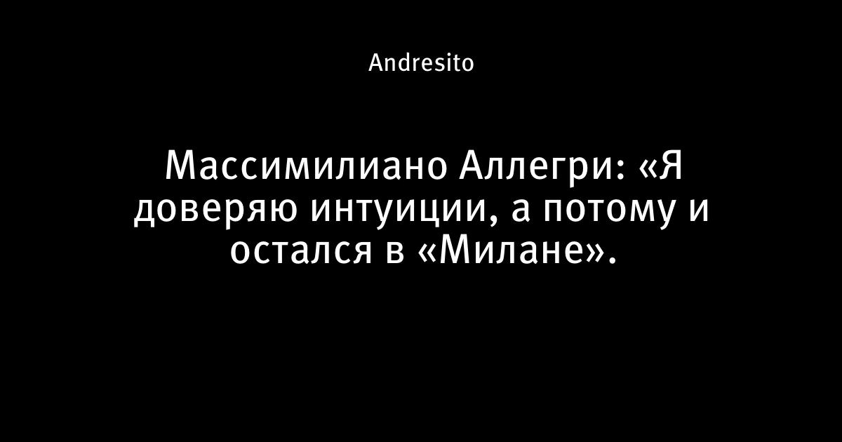 Массимилиано Аллегри: «Я доверяю интуиции, а потому и остался в «Милане».