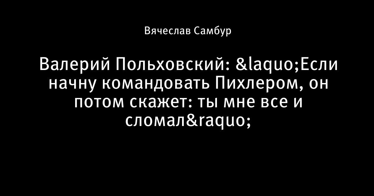 Валерий Польховский: «Если начну командовать Пихлером, он потом скажет: ты мне все и сломал»