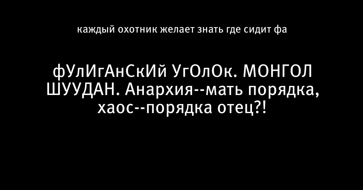 фУлИгАнСкИй УгОлОк. МОНГОЛ ШУУДАН. Анархия--мать порядка, хаос--порядка отец?!