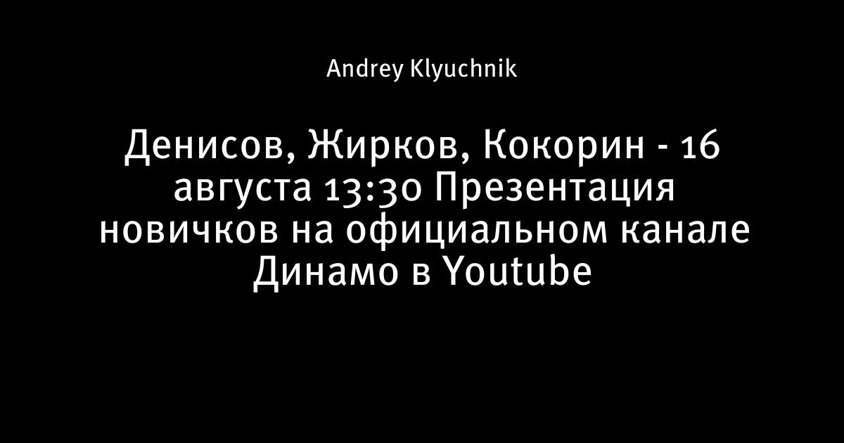 Денисов, Жирков, Кокорин - 16 августа 13:30 Презентация новичков на официальном канале Динамо в Youtube