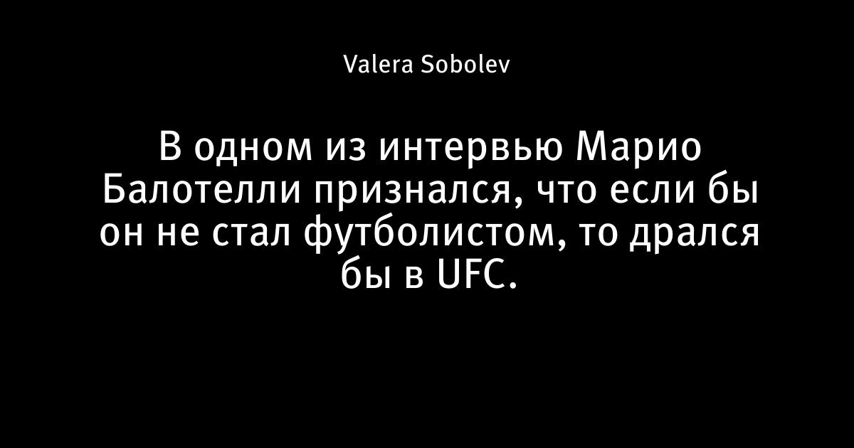В одном из интервью Марио Балотелли признался, что если бы он не стал футболистом, то дрался бы в UFC.