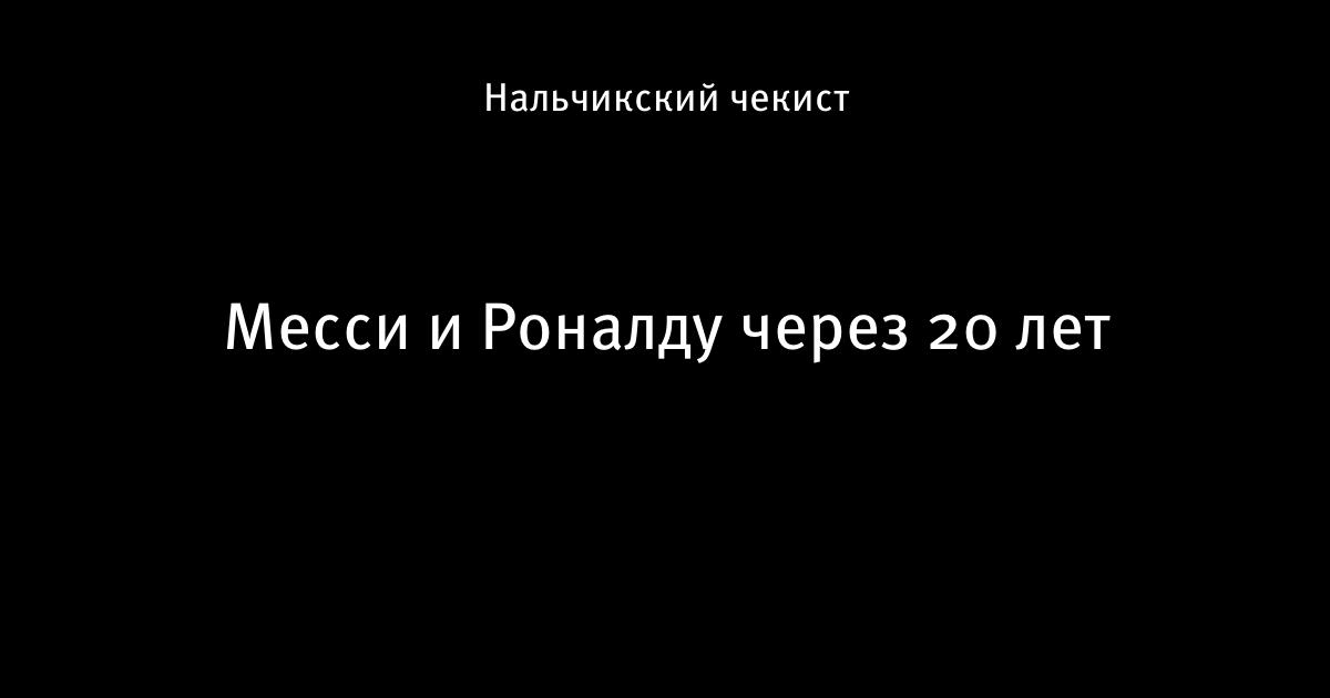 17 августа 2013, 10:22 Месси и Роналду через 20 лет Автор Нальчикский чекист Этот пост опубликован в блоге на Трибуне Sports.ru. Присоединяйтесь к крупнейшему сообществу спортивных болельщиков! Другие посты блога Телевизор 3.0 Лионель Месси Криштиану Роналду