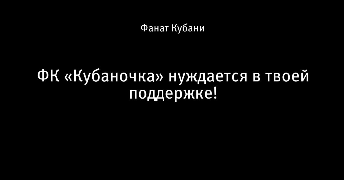 20 августа 2013, 15:32 ФК «Кубаночка» нуждается в твоей поддержке! 2 Автор Фанат Кубани Этот пост опубликован в блоге на Трибуне Sports.ru. Присоединяйтесь к крупнейшему сообществу спортивных болельщиков! Другие посты блога Вы это видели?