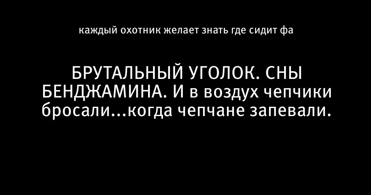 БРУТАЛЬНЫЙ УГОЛОК. СНЫ БЕНДЖАМИНА. И в воздух чепчики бросали...когда чепчане запевали.