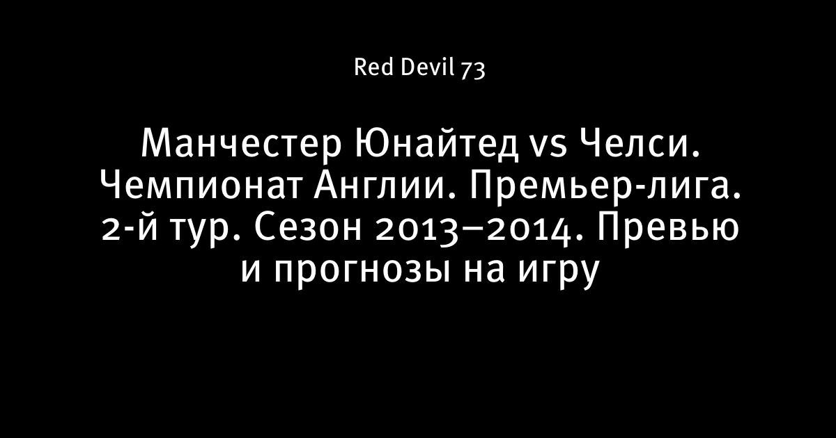 Манчестер Юнайтед vs Челси. Чемпионат Англии. Премьер-лига. 2-й тур. Сезон 2013–2014. Превью и прогнозы на игру