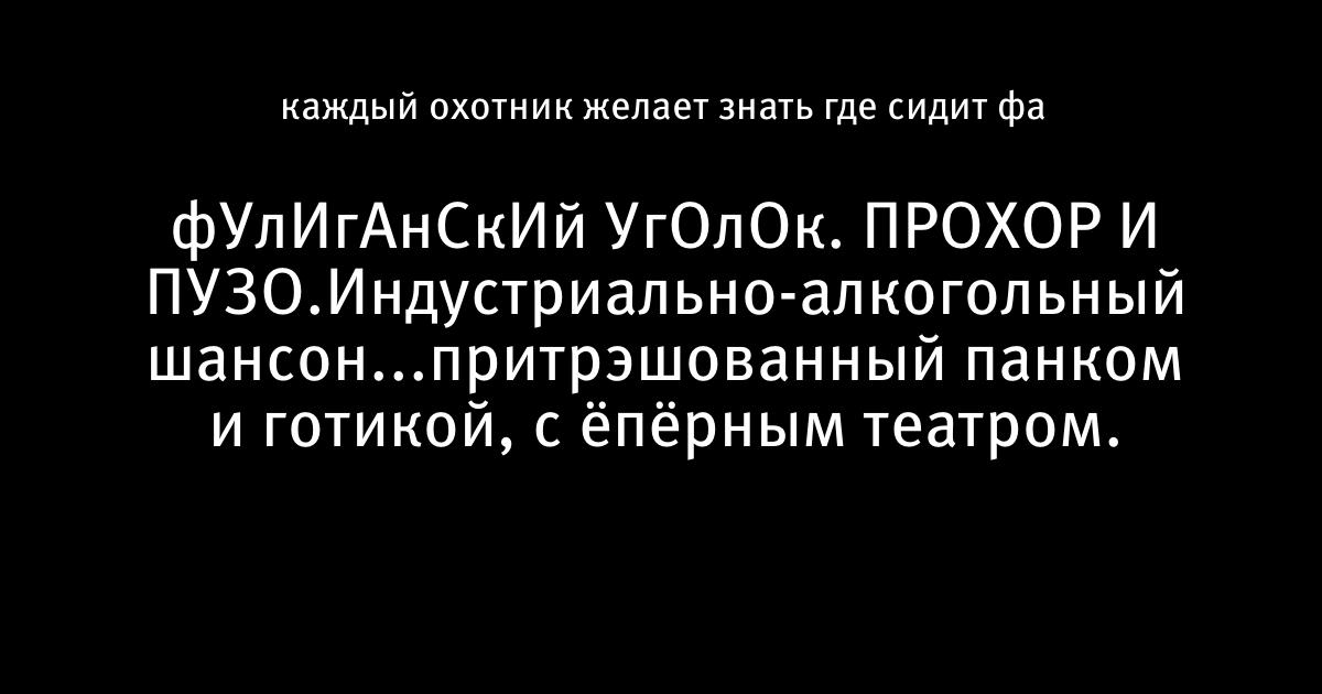 фУлИгАнСкИй УгОлОк. ПРОХОР И ПУЗО.Индустриально-алкогольный шансон...притрэшованный панком и готикой, с ёпёрным театром.