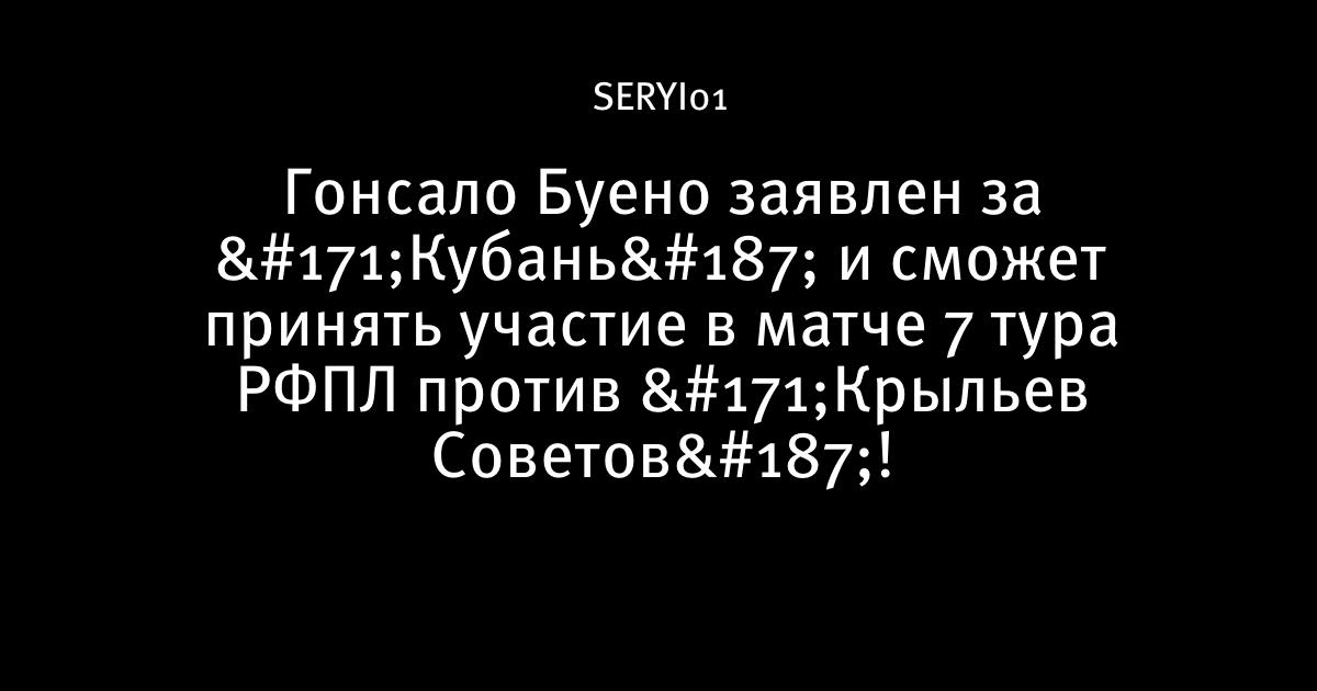 Гонсало Буено заявлен за «Кубань» и сможет принять участие в матче 7 тура РФПЛ против «Крыльев Советов»!