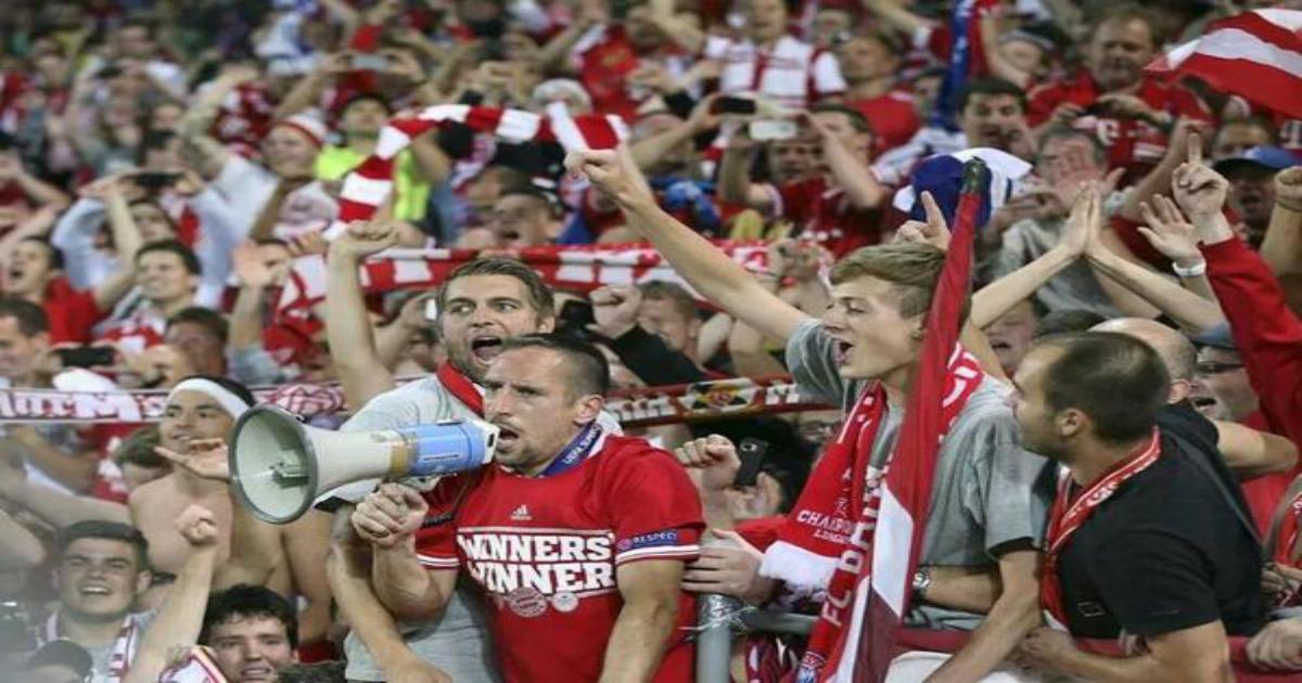 Франк Рибери на баварской фан-трибуне после вчерашней победы в Суперкубке УЕФА