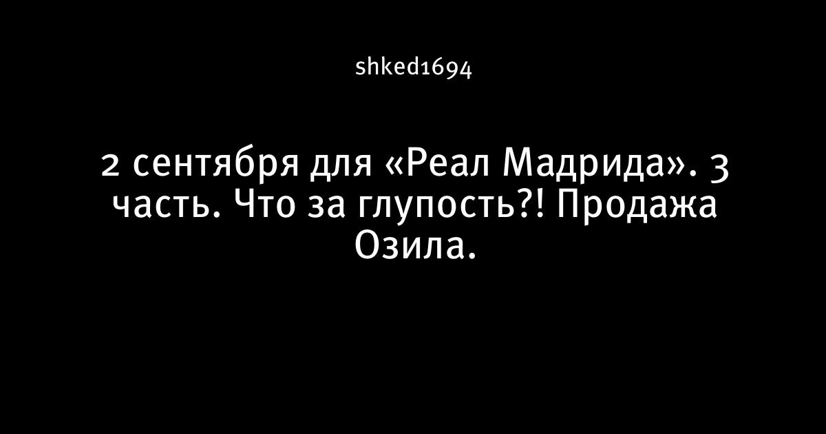 2 сентября для «Реал Мадрида». 3 часть. Что за глупость?! Продажа Озила.
