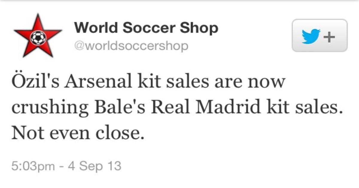 Озил - состоявшийся игрок одного из мировых топ-клубов, Бейл - из заштатного (извините) Тоттенхема, о которым толпы китайских, японских и южноазиатских покупальщиков футболок узнали только с появлением слухов о его покупке. Так что все логиш.