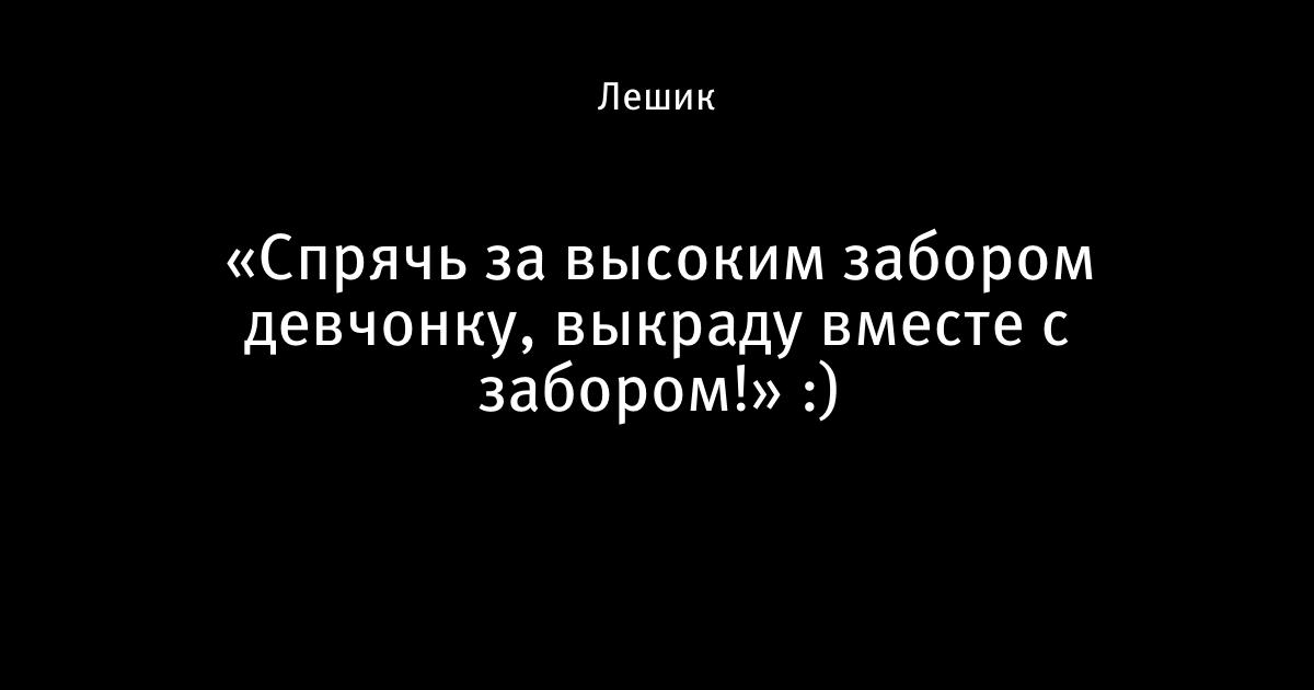«Спрячь за высоким забором девчонку, выкраду вместе с забором!» :)