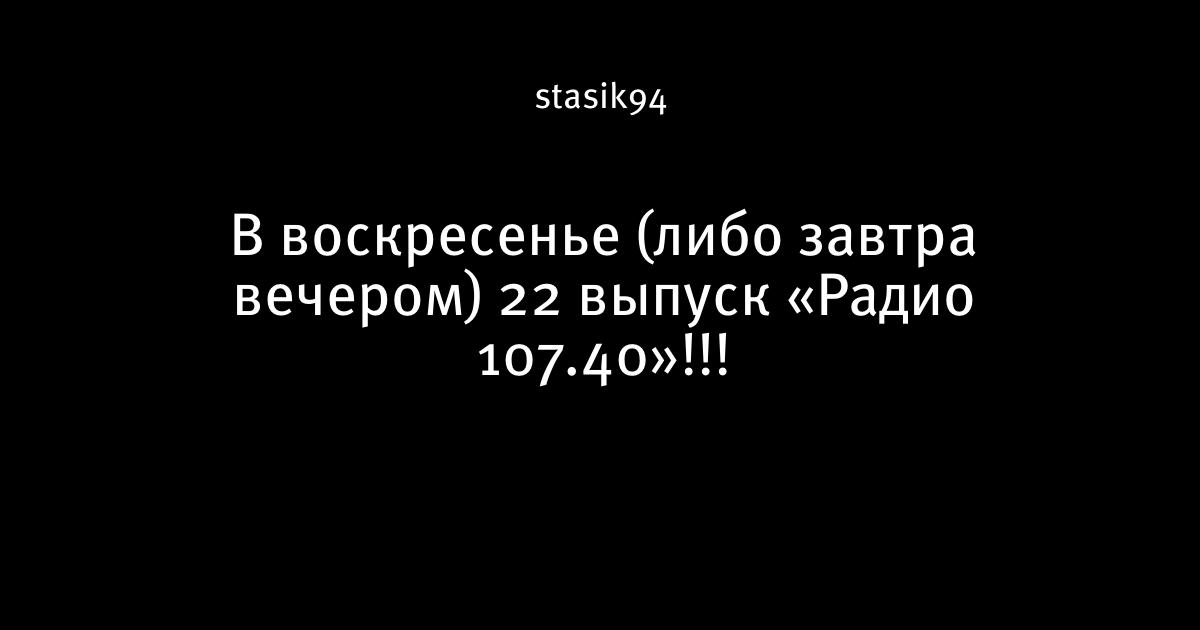В воскресенье (либо завтра вечером) 22 выпуск «Радио 107.40»!!!