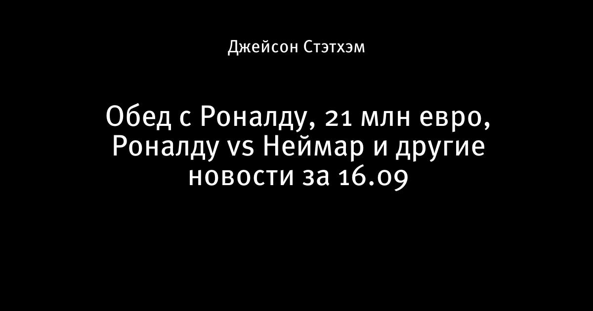 Обед с Роналду, 21 млн евро, Роналду vs Неймар и другие новости за 16.09