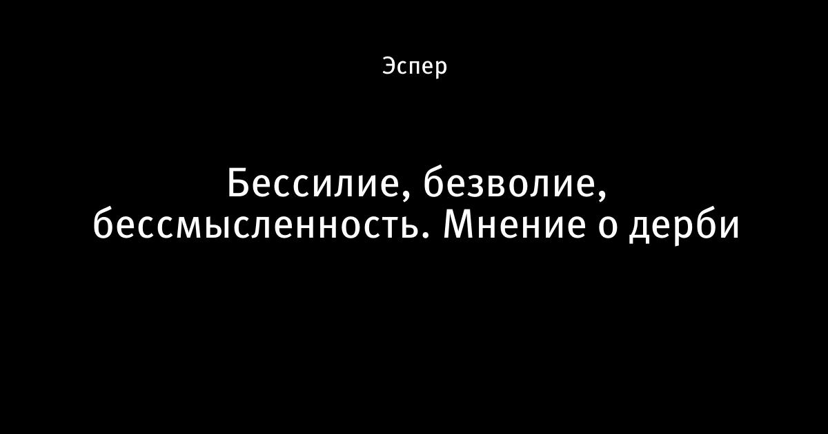 Бессилие, безволие, бессмысленность. Мнение о дерби