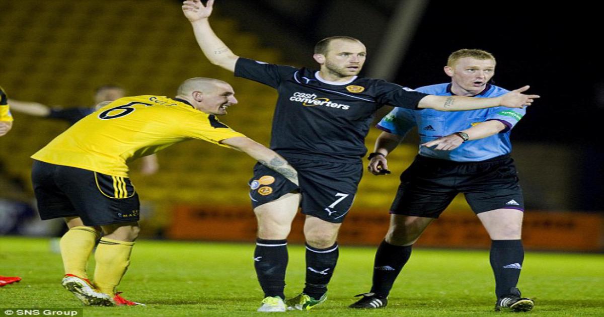 Игрок шотландской команды "Ливингстон" Джимми Скотт зачем-то схватил за бубенчики Джеймса Макфадена из клуба "Мазервел". Скотт в отличии от Винни Джонса при этом улыбался. Еще фото внутри.