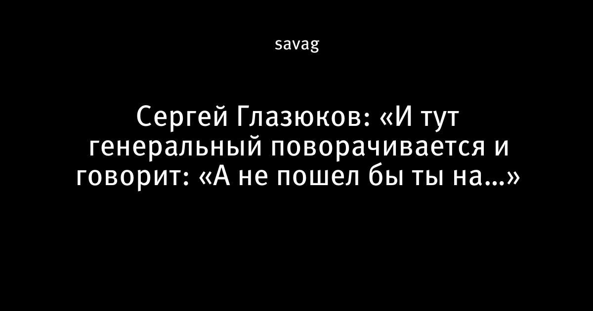 Сергей Глазюков: «И тут генеральный поворачивается и говорит: «А не пошел бы ты на…»